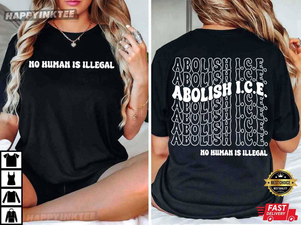 Abolish Ice No Human Is Illegal 2 Sided T-Shirt – t shirt printing, custom tee shirts