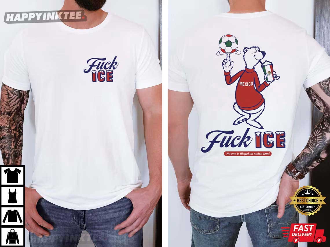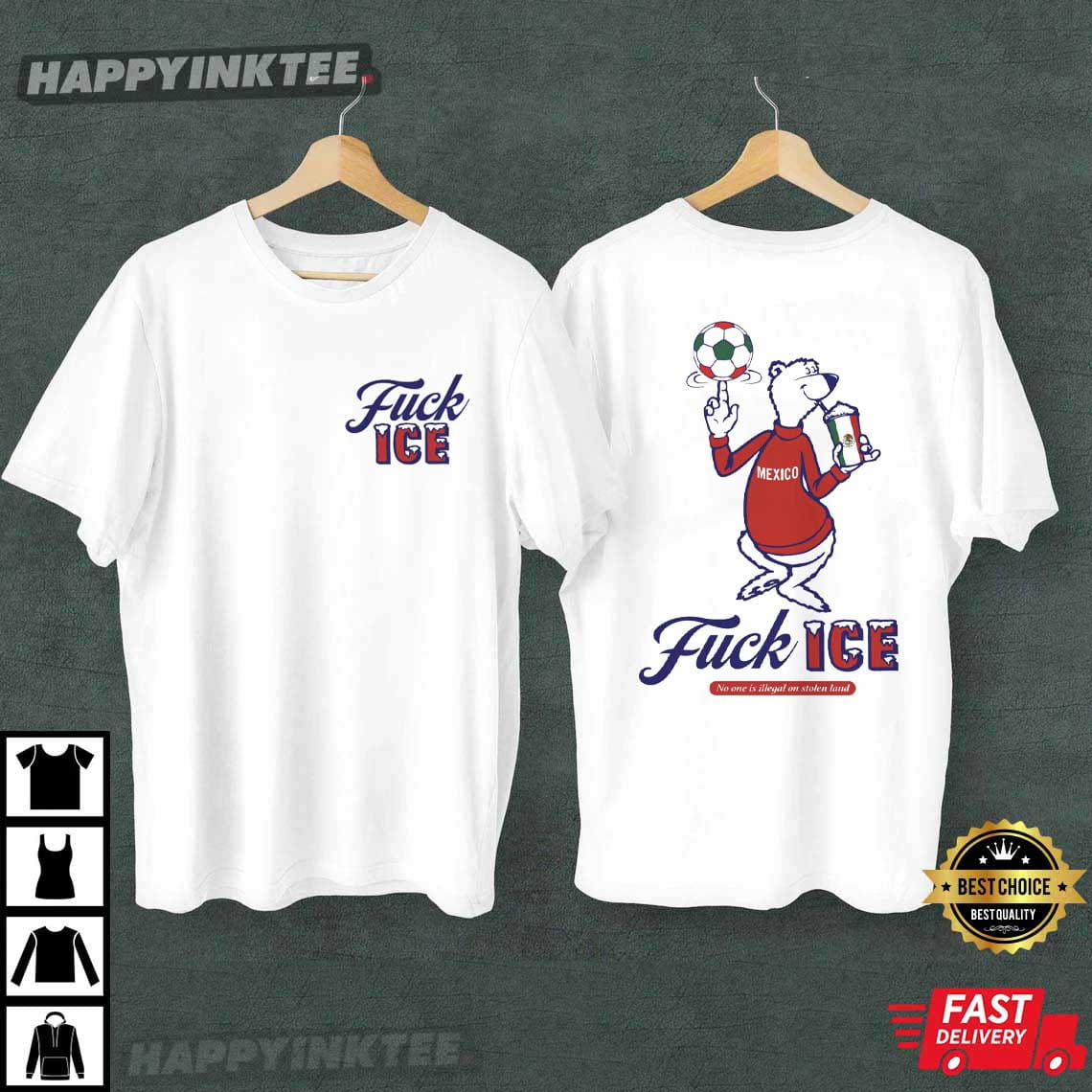 Are you prepared to stand out with flair and a dash of sass? Introducing the Abolish ICE This graphic T-shirt, “No Human Is Illegal On Stolen Land,” is as bold as your convictions and twice as comfortable! This isn’t just another item of apparel; it’s a humorous wearable protest that features a cheeky polar bear balancing a drink and a soccer ball while sporting a Mexico T-shirt design.