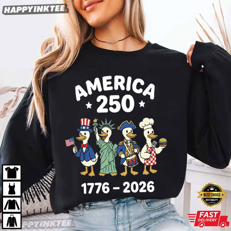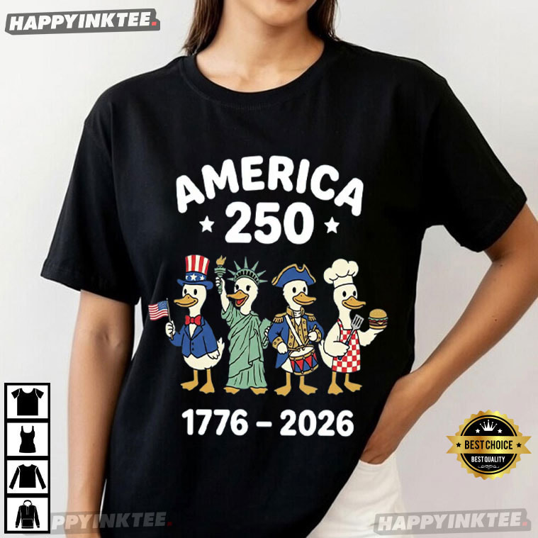 Celebrate America’s 250th birthday with humor and charm in the America 250 1776–2026 Funny Patriotic Ducks 4th Of July T-Shirt—a playful design that brings together history, patriotism, and a lighthearted twist. Above them, “America 250” celebrates the Semiquincentennial, while “1776–2026” marks 250 years of independence. It’s a clever blend of humor and history that makes patriotism approachable and enjoyable.