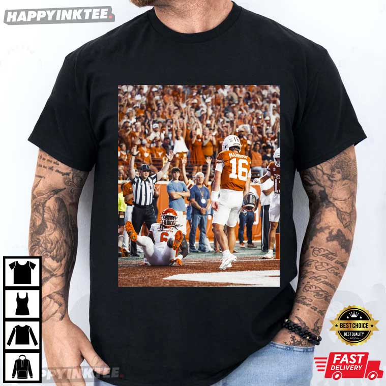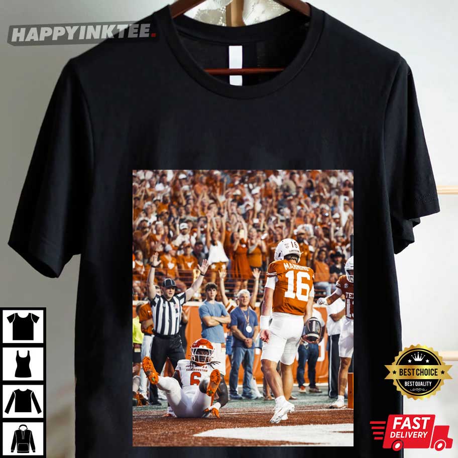 Check out the Arch Manning Stare Down Texas Longhorns T-Shirt and relive one of the biggest moments in college football! It shows off a classic shot of Texas QB Arch Manning after a big play, totally capturing the cool vibe, energy, and confidence that fans dig about him.