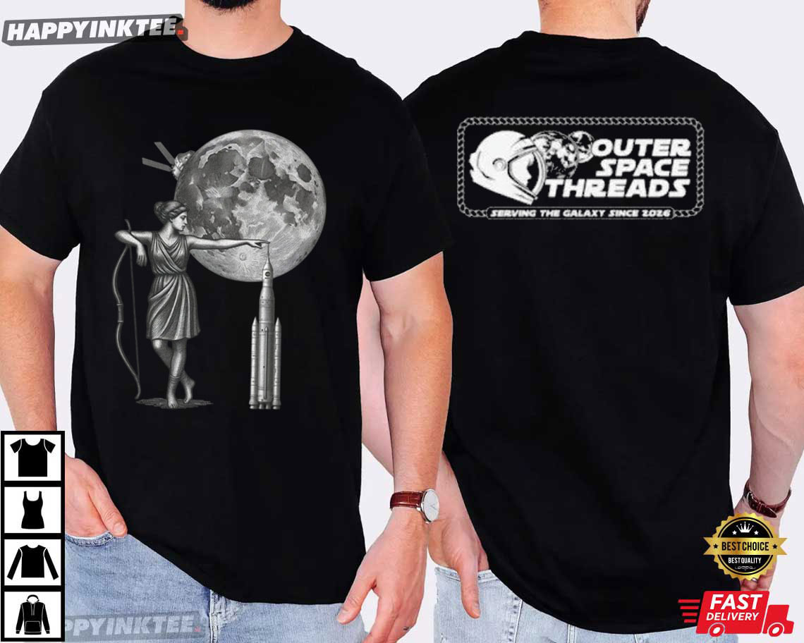 Artemis II Moon Goddess With Rocket Outer Space Threads T-Shirt – vintage graphic t shirts, unique graphic t shirts