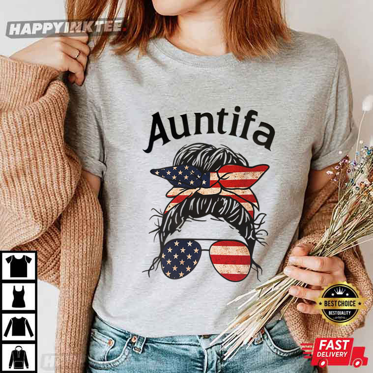 Auntifa Anti Fascism Messy Bun T-Shirt – t shirt printing, custom tee shirts