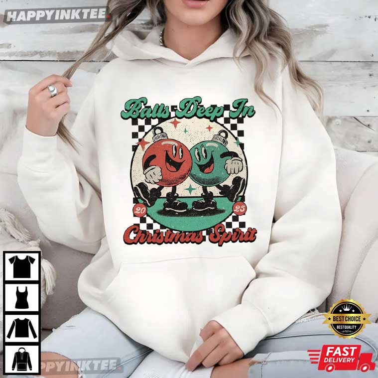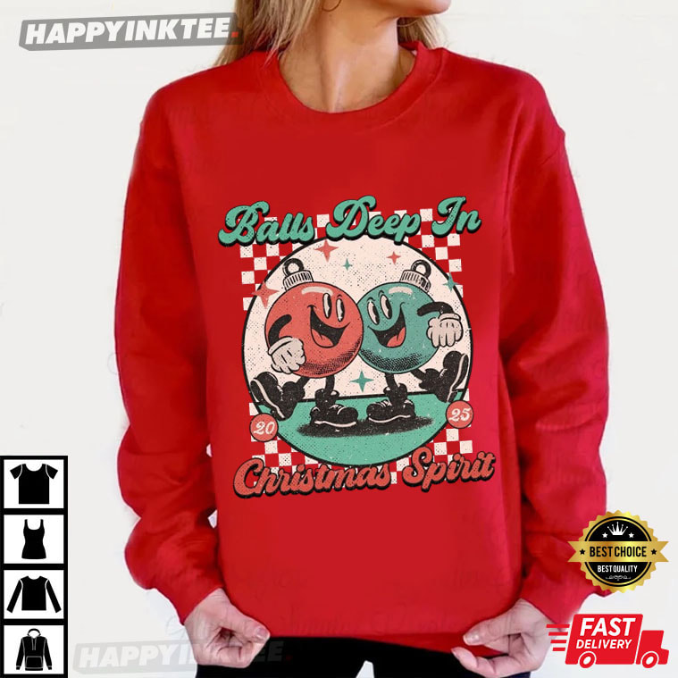 Balls Deep In Christmas Spirit Funny Holiday Gifts T-Shirt – funny christmas shirts, christmas sweat shirts
