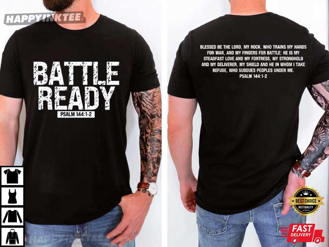 Battle Ready Psalm 144 1-2 Christian T-Shirt – t shirt printing, custom tee shirts