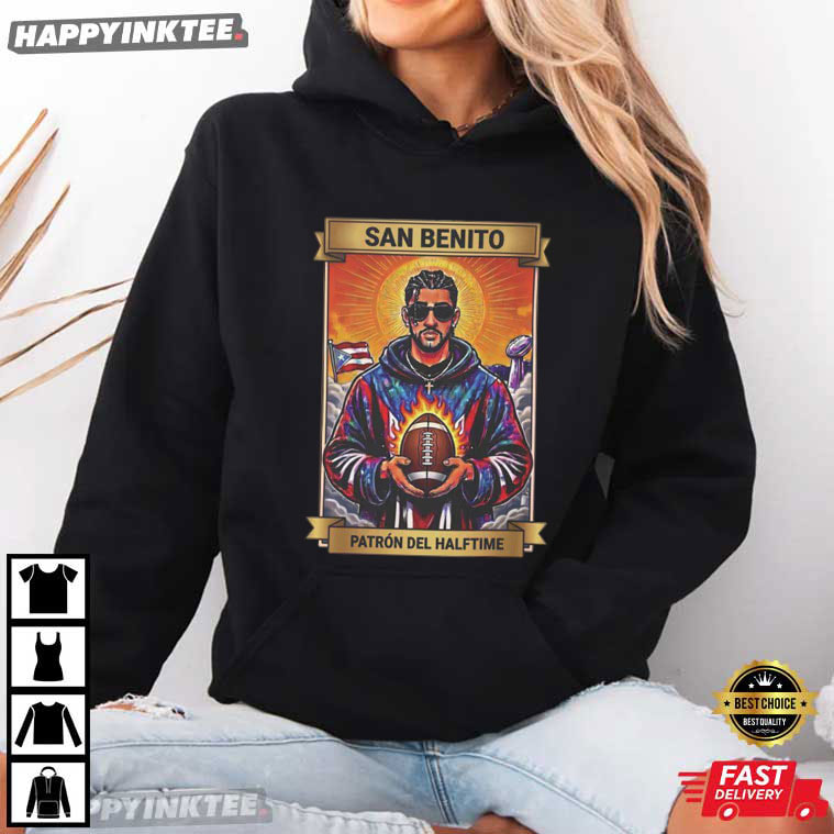 Whether you lived every beat of his chart-topping hits or cheered as he brought vibrant Latin identity to the heart of American pop culture, this Benito Bowl shirt is more than an outfit — it’s a symbol of pride, unity, and celebration.