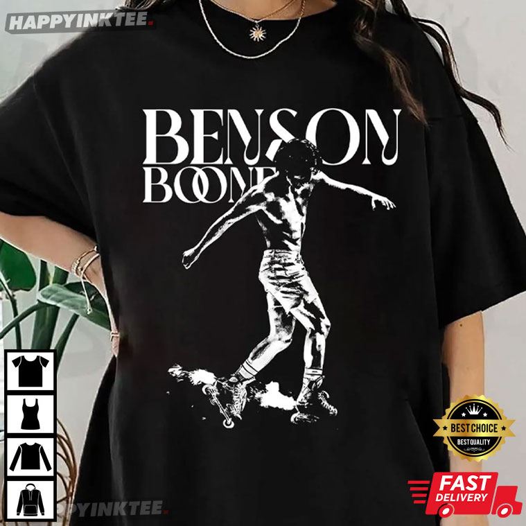 Our Benson Boone Fireworks and Rollerblades Vintage Fan Gift T-Shirt is all about the vibes and themes from his “Fireworks & Rollerblades” EP, making it a must-have for true fans. The design shows a black-and-white graphic of Benson Boone on rollerblades, looking super dynamic, maybe in the middle of skating or nailing a trick.