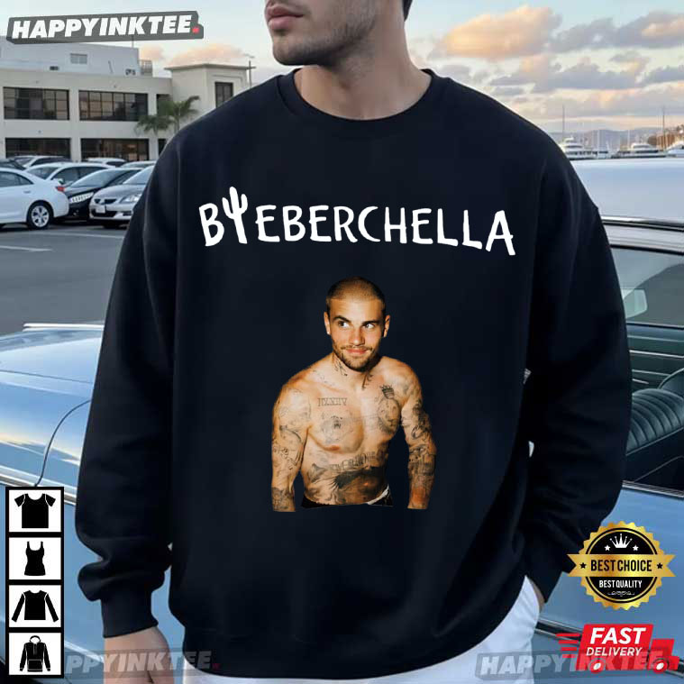 The big “Bieberchella” text stands out right away, with a fun spin on “Coachella.” This puts the design right in the world of music festivals, celebrity culture, and viral humor. It’s a little cheeky and rebellious, and it’s the kind of phrase you would expect to see on TikTok or Instagram during festival season.