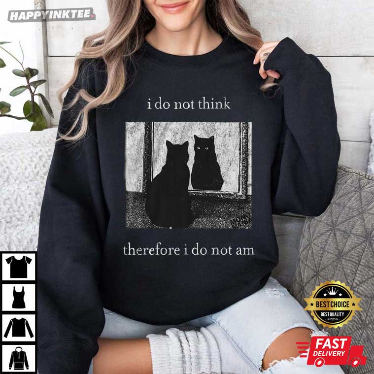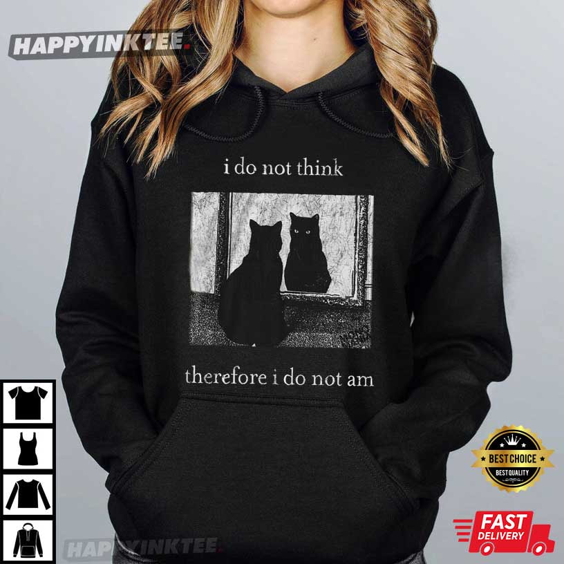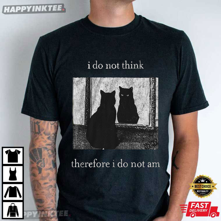 Black Cat I Do Not Think Therefore I Do Not Am Vintage Witchy T-Shirt – vintage graphic t shirts, unique graphic t shirts