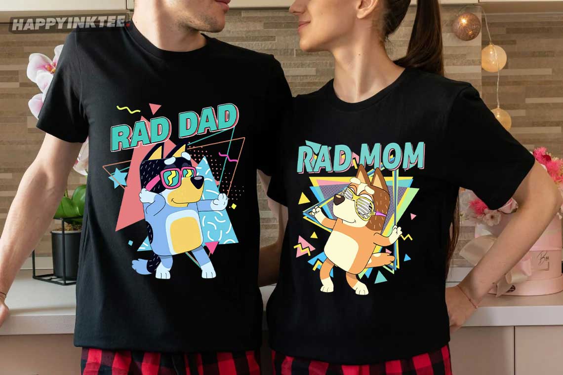Bluey Rad Dad Rad Mom Couples Shirts – Matching Clothing Couples