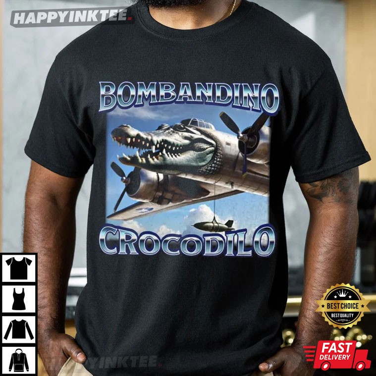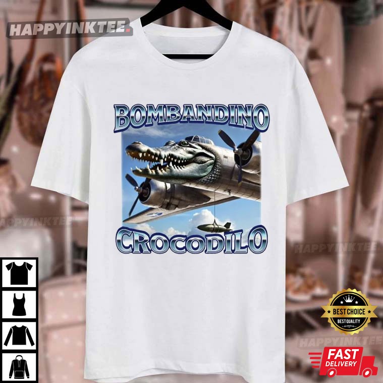 Unleash your humor with the Bombandino Crocodilo Funny Brainrot Crocodile Meme T-Shirt.