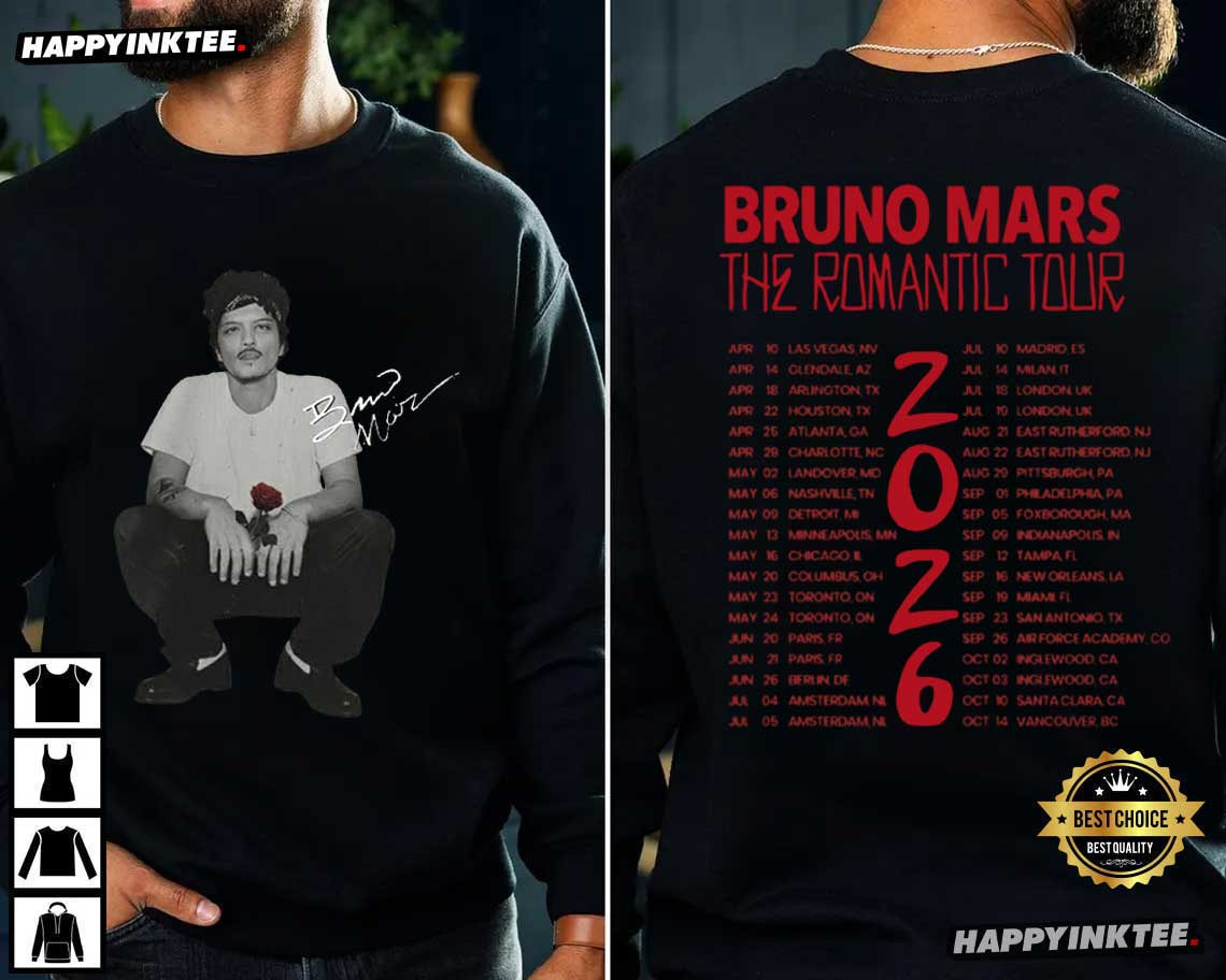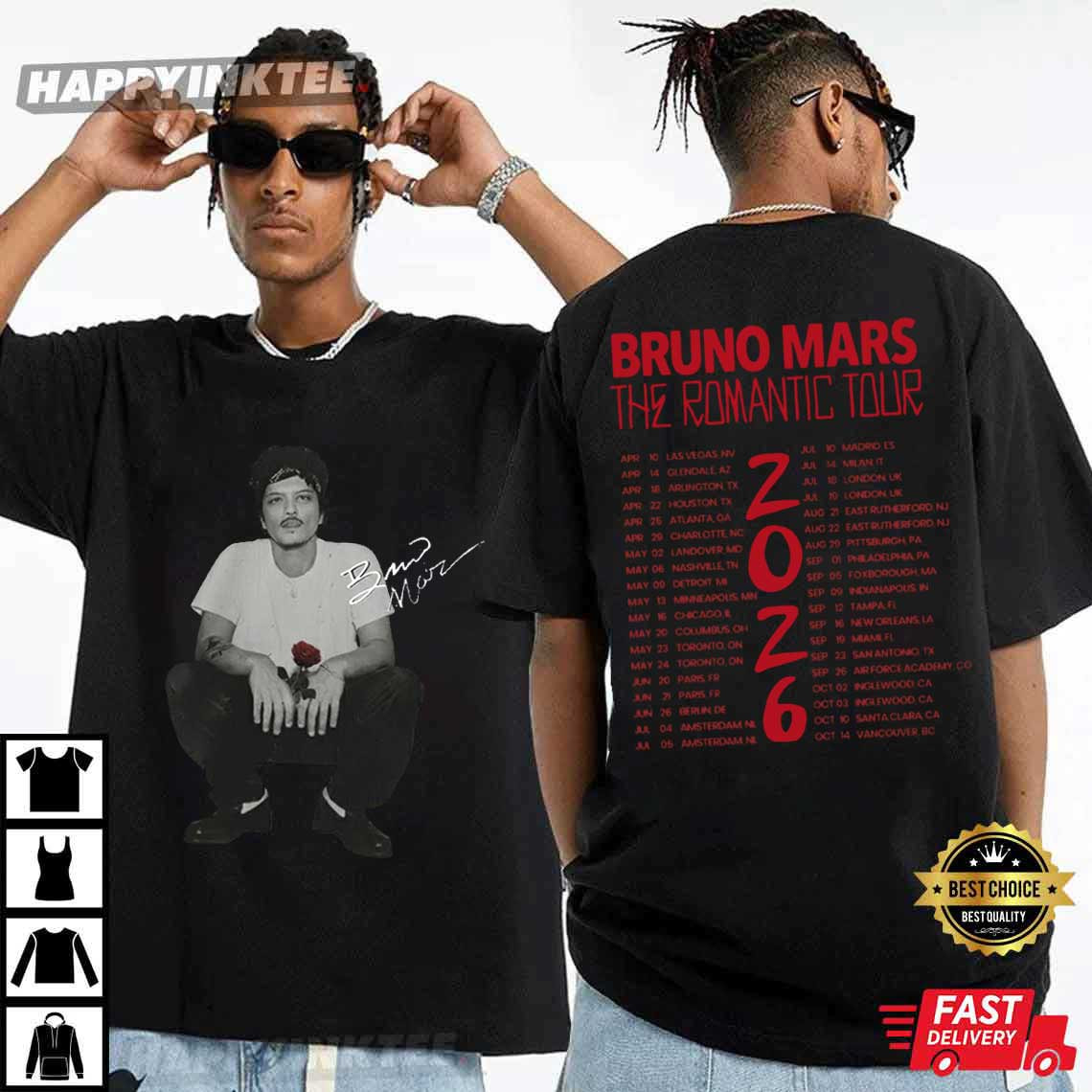 Bruno Mars The Romantic Tour 2026 Music Fan Gift T-Shirt – music t shirts, graphic band shirts