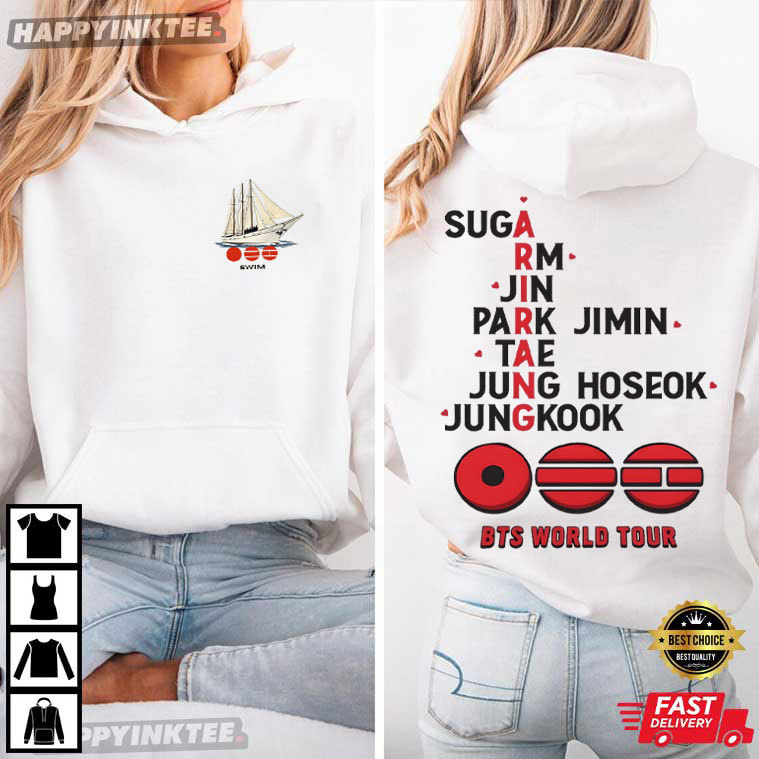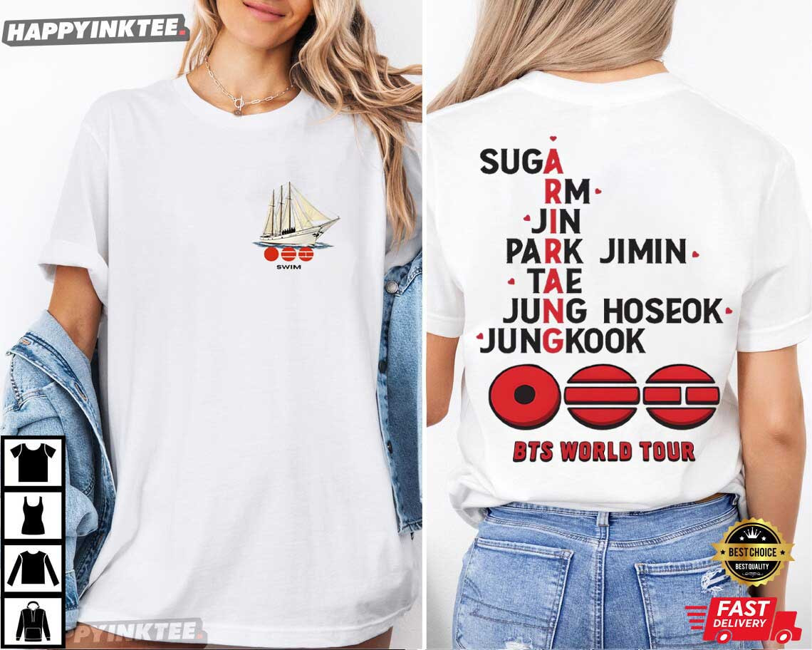 BTS Arirang World Tour Swim Letter T-Shirt – concert t shirts, concert tour t shirts, music group t shirts, classical music t-shirts, 80s rock band t shirts, music shirt designs, vintage band t shirts, music tee shirts, music t-shirts mens