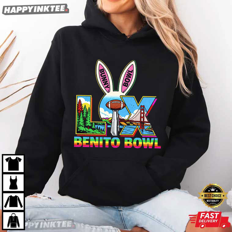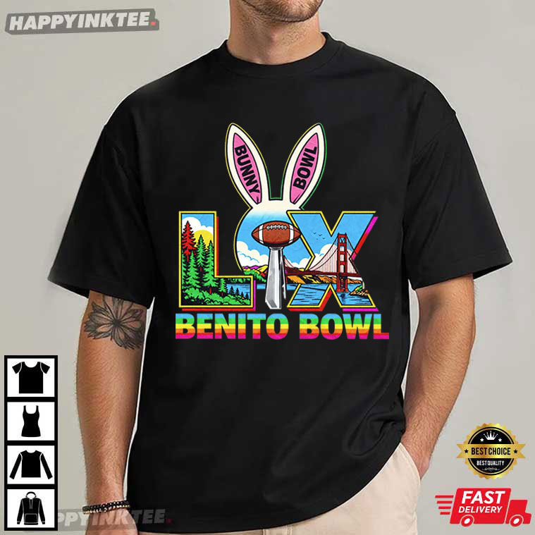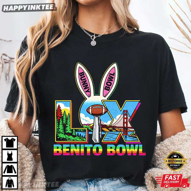 Bold colors, pop culture, and football hype come together in the Bunny Bowl LIX Benito Bowl Half Time Football Gift T-Shirt — a fun parody design made for fans who love music, sports, and internet-worthy humor. This Bunny Bowl LIX shirt is all about celebrating the crossover moment where halftime shows become just as iconic as the game itself.