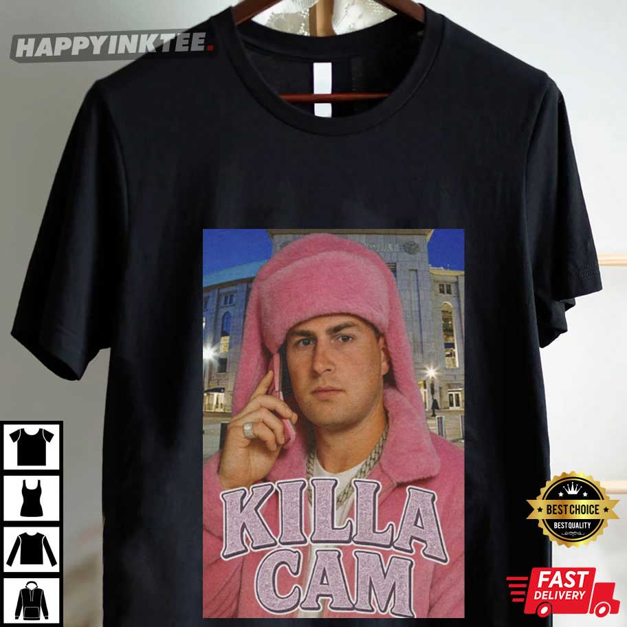 Show off your style at the stadium with this Killa Cam Yankees T-Shirt! It takes a cue from pitcher Cam Schlittler’s eye-catching pink outfit, mixing vintage sports vibes with a touch of early-2000s hip-hop style — all while rocking that famous “Killa Cam” look that went viral.