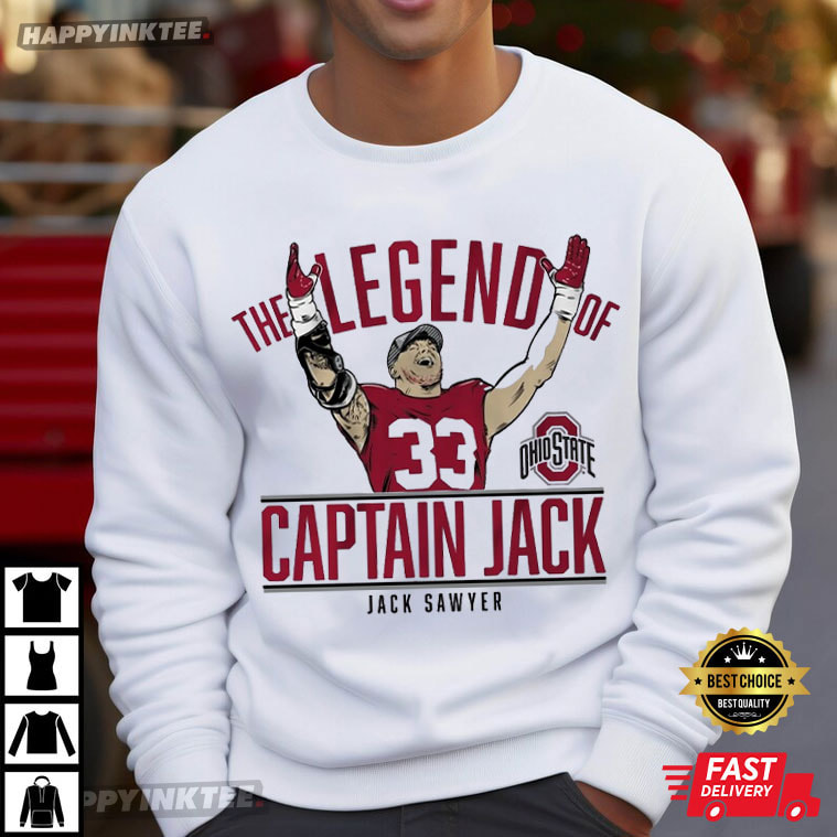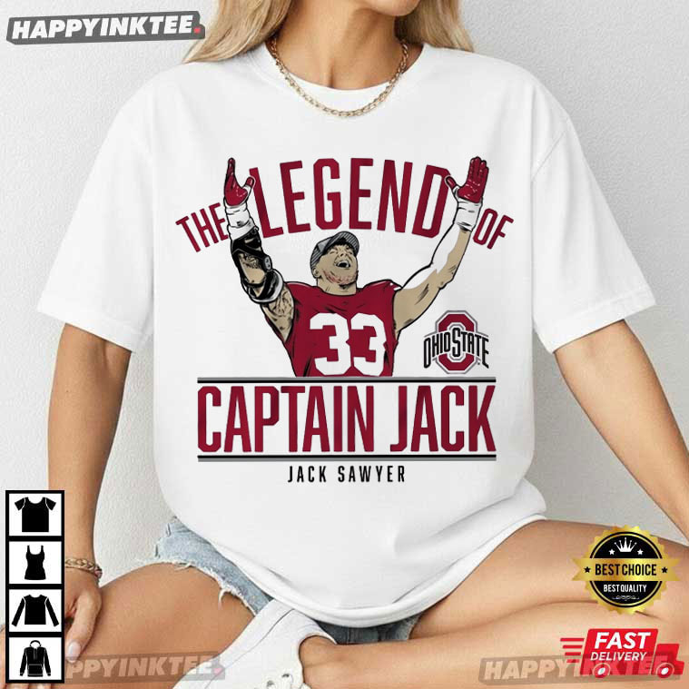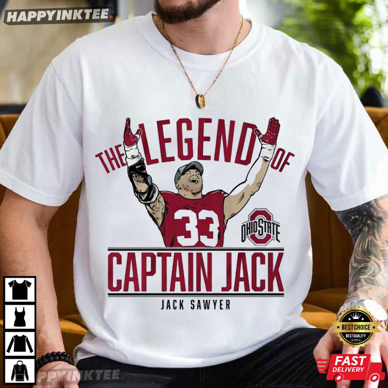 Captain Jack Sawyer The Legend Of Ohio State Football T-Shirt – custom football jersey, personalized football jersey, football jersey custom design, vintage nfl shirts, nfl player t-shirts