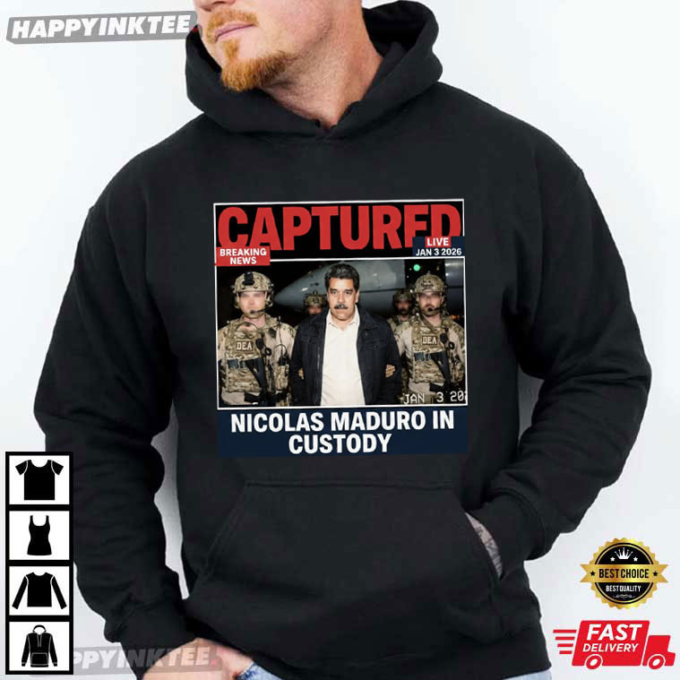 The Captured Nicolas Maduro In Custody Venezuela Libre 2026 Political T-Shirt is a striking protest-style design created for those who openly support freedom, accountability, and democratic change in Venezuela. This Venezuela Libre tee doesn’t rely on subtlety. It feels urgent and real —like a headline frozen in time—because of the striking colors, news-type framing, and documentary approach.