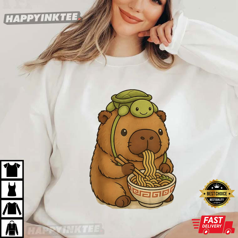 Capybara Eating Ramen Turtle Hat T-Shirt – t shirt printing, custom tee shirts
