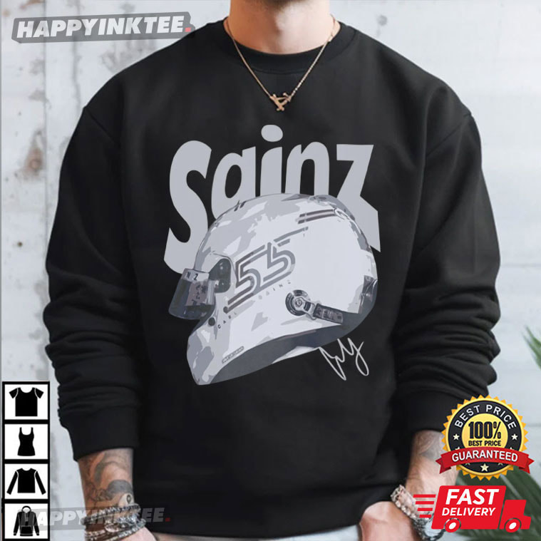 Featuring a bold helmet graphic and Sainz’s signature “55” emblem, this tee captures the power, precision, and pride of one of the sport’s most exciting drivers. It is ideal for casual wear as well as racing events because of its simple layout and clean lettering. Whether you’re a die-hard Sainz supporter or a dedicated motorsport enthusiast, this shirt is your ticket to race-day style and speed-inspired confidence.