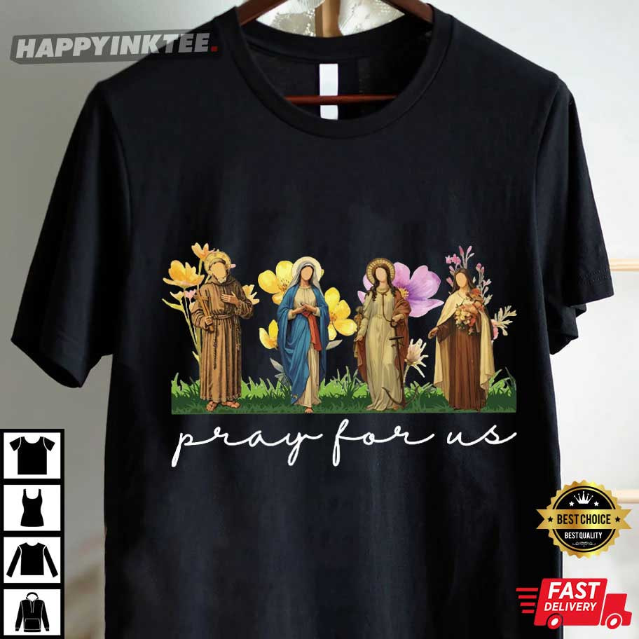 Catholic Saints Pray For Us Floral Women Religious T-Shirt – t shirt printing, custom tee shirts