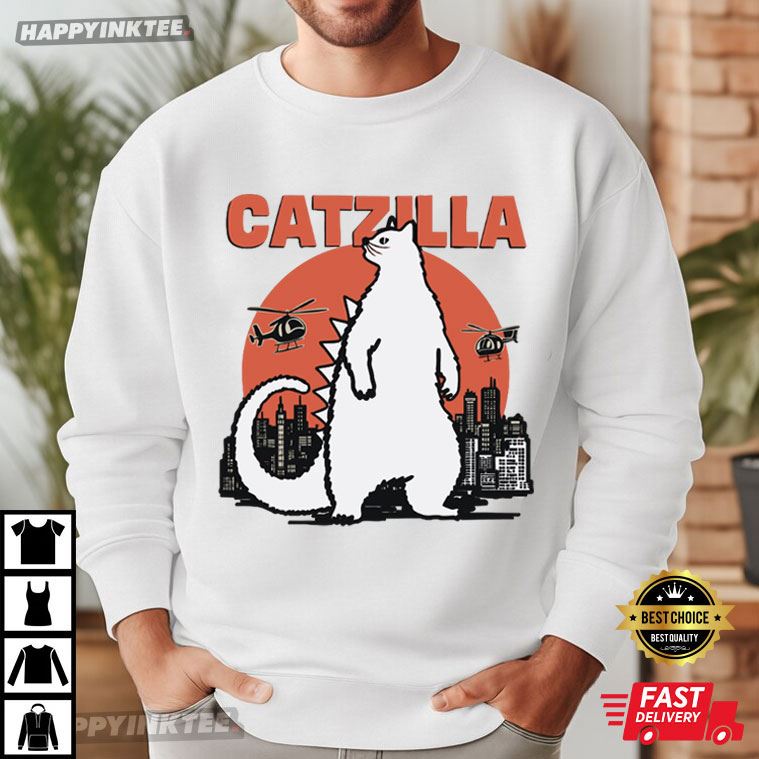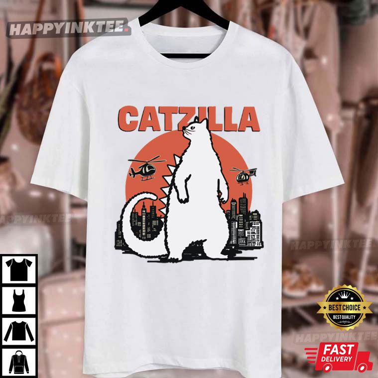 Catzilla Funny Cat Parody T- Shirt – t shirt printing, custom tee shirts