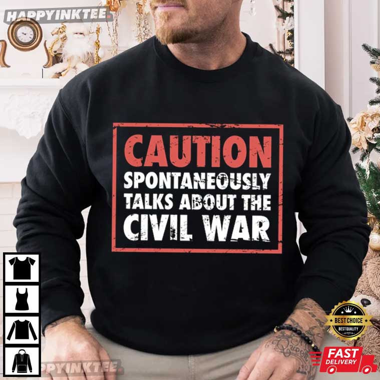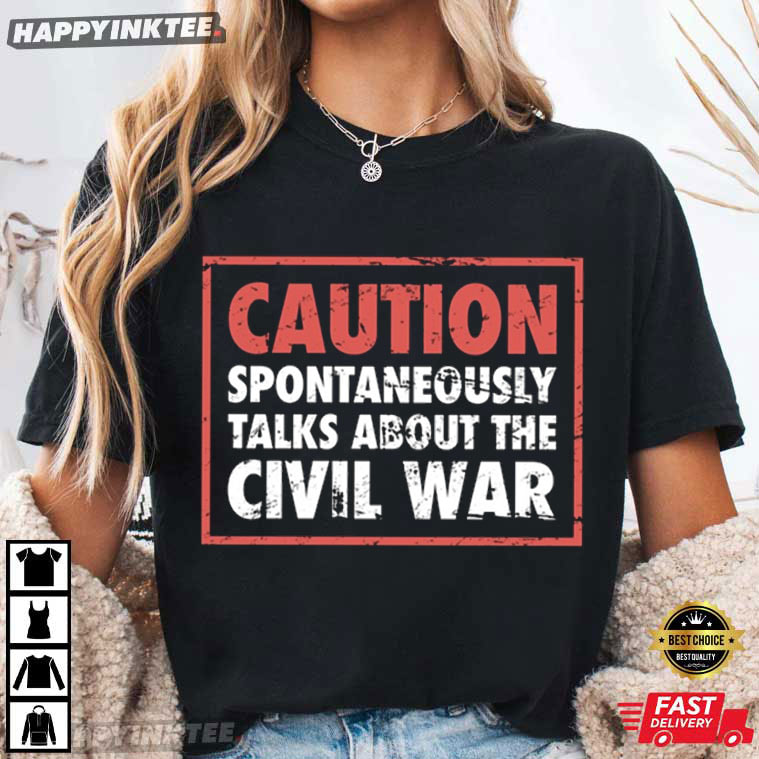Caution Spontaneously Talk About Civil War Reenactment Gift T-Shirt – vintage graphic t shirts, unique graphic t shirts