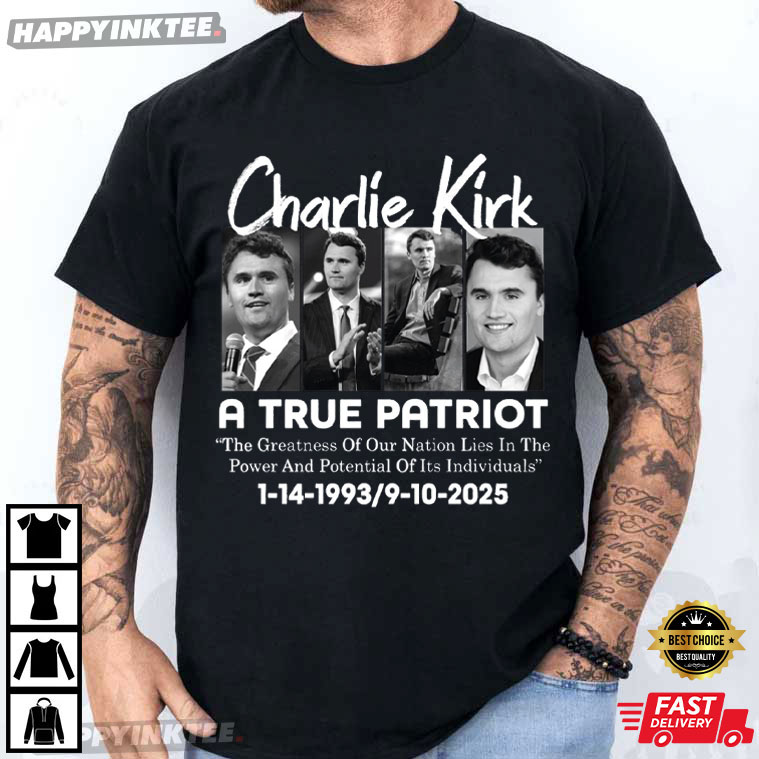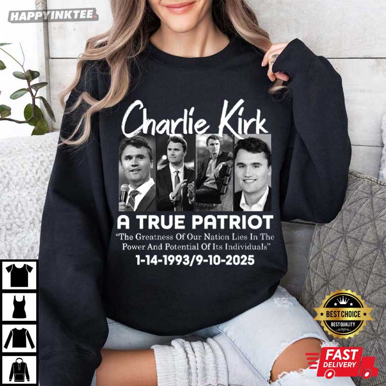 Show some love for a fearless voice with the Charlie Kirk A True Patriot Vintage T-Shirt. It has a cool black-and-white collage design and showcases one of Charlie Kirk‘s famous quotes, celebrating his love for American values, freedom, and leadership. This Charlie Kirk memorial shirt is great for his supporters who want to spread his message. It shows strength and patriotism whether you go.