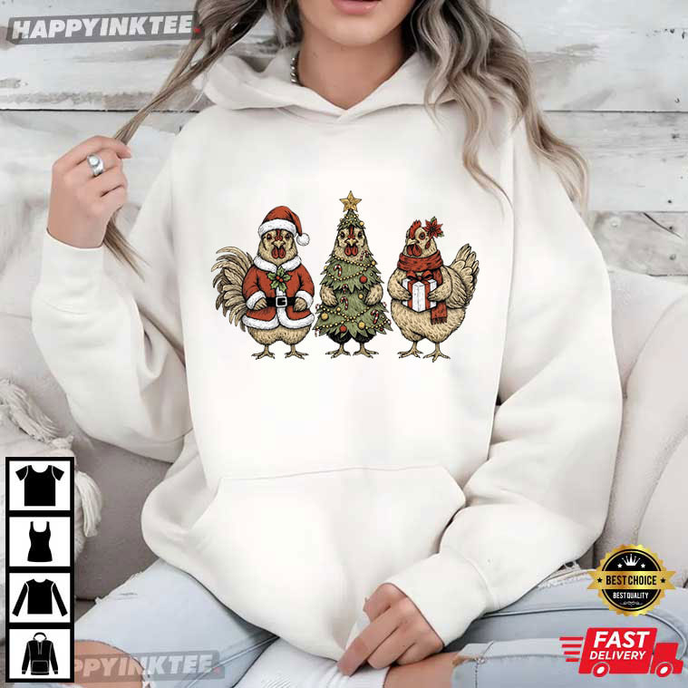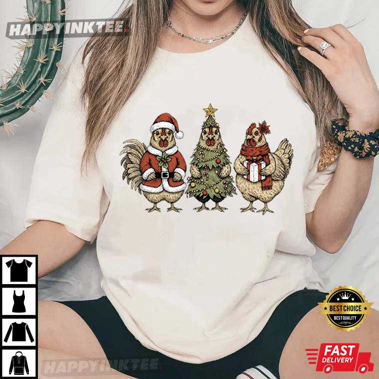Chicken Christmas Tree Coquette Bow Christmas Gift T-Shirt