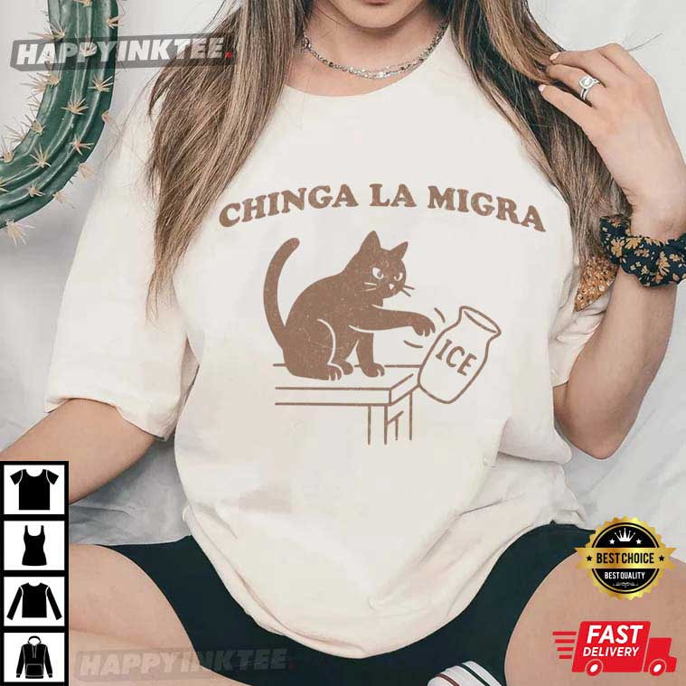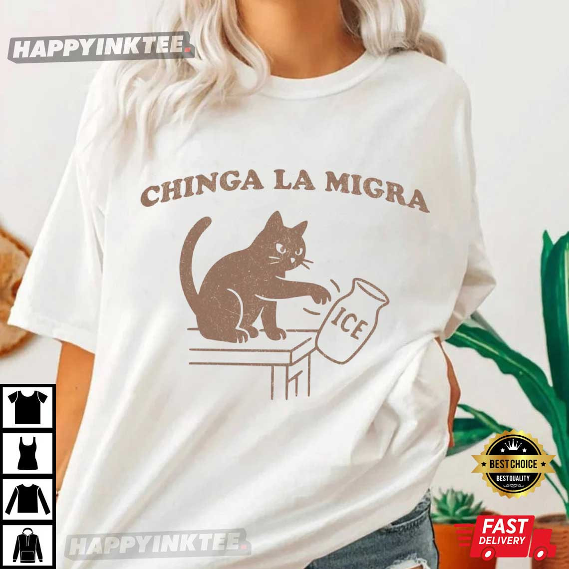 Chinga La Migra Pro Immigration Abolish ICE Funny Cat Feminist T-Shirt – vintage graphic t shirts, unique graphic t shirts