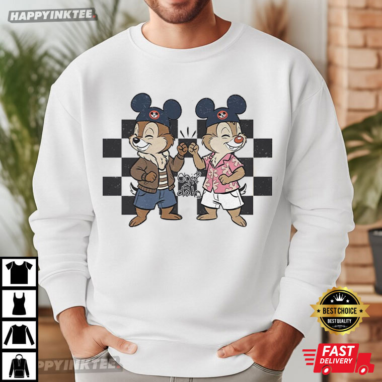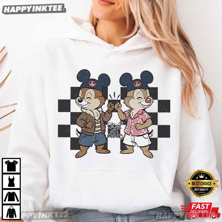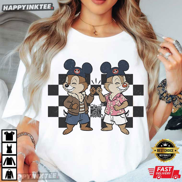 Bring double the trouble and double the smiles on your next Disney adventure with this adorable Chip and Dale Checkered Walt Disney World Family Vacation T-Shirt! Perfect for couples, besties, siblings, or the whole family, everyone’s favorite mischievous chipmunks are featured on this Chip and Dale t-shirt, ready to have some classic Disney fun. This design captures the timeless friendship and hilarious dynamic of Chip ‘n’ Dale, Disney fans have been laughing at the Rescue Rangers pair for decades. Whether you’re heading to Walt Disney World, Disneyland, this shirt is essential for your holiday outfit, regardless of whether you enjoy collecting adorable Disney merchandise.