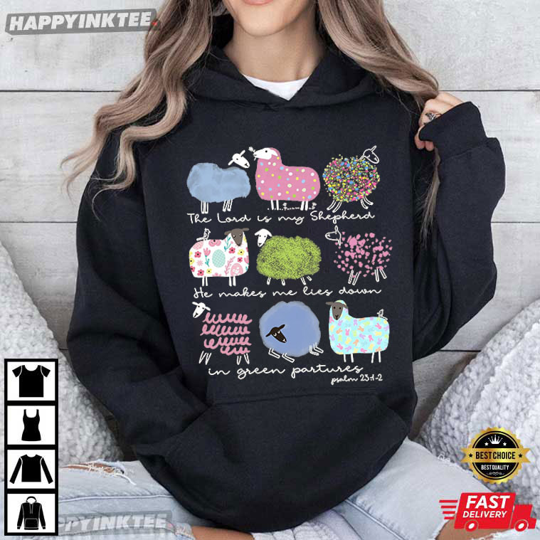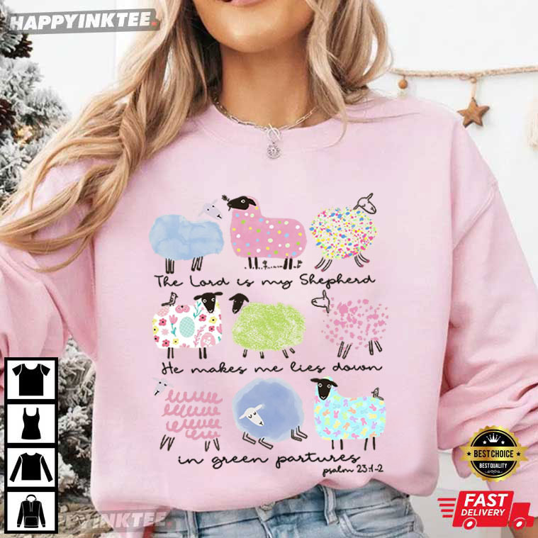 Wrap yourself in comfort, faith, and gentle beauty with this Christian Easter The Lord Is My Shepherd Psalm 23:1-2 T-Shirt—a heartfelt design that brings one of the most beloved Bible passages to life.
