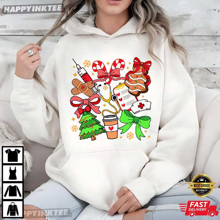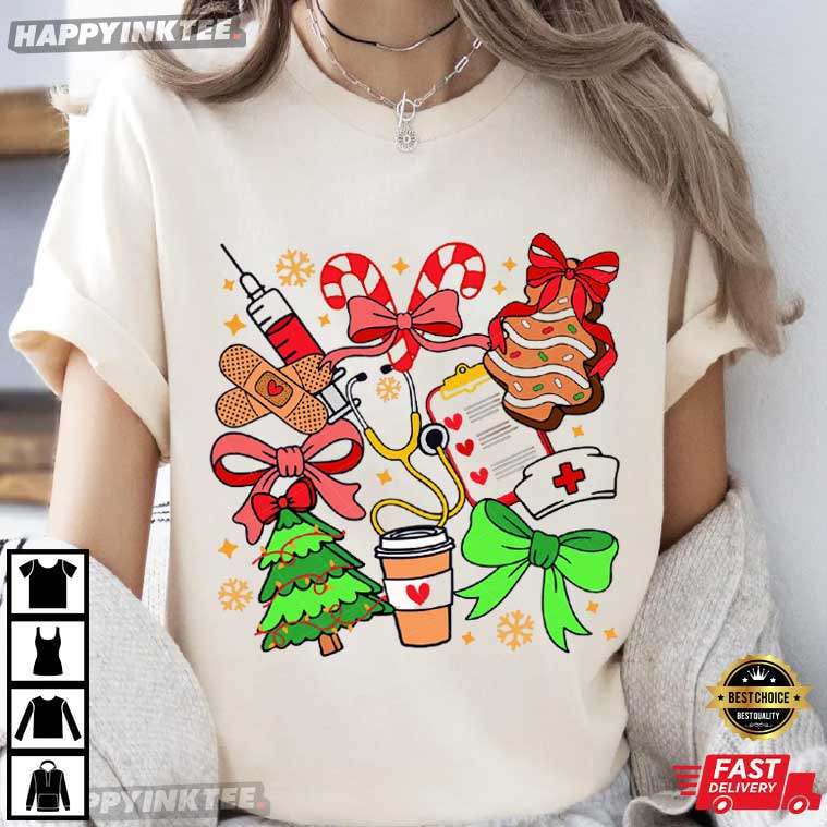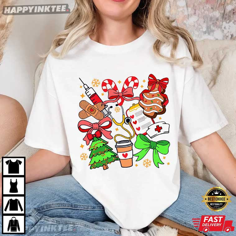 Christmas Preppy Coquette Nurse Healthcare Worker T-Shirt – christmas sweat shirts, funny christmas shirts, christmas tree shirt, christmas t shirts family, christmas themed shirts