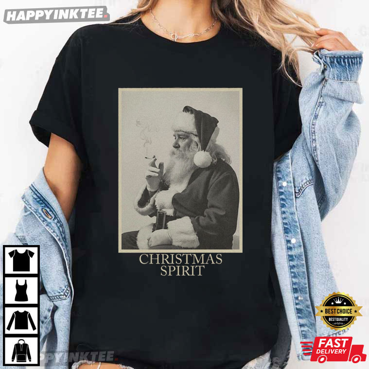 Christmas Spirit Funny Santa Smoking Retro Holiday T-Shirt – funny christmas shirts, christmas sweat shirts