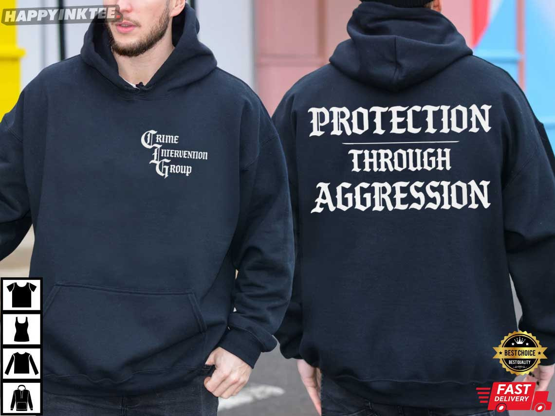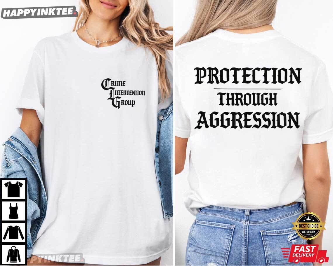 CIG Crime Intervention Group Protection Through Aggression T-Shirt – vintage graphic t shirts, unique graphic t shirts