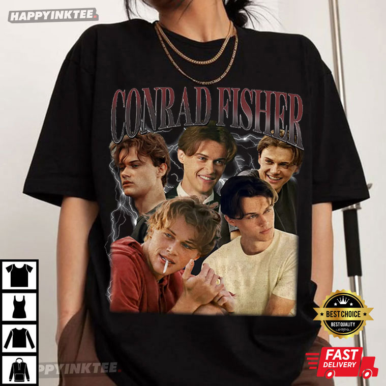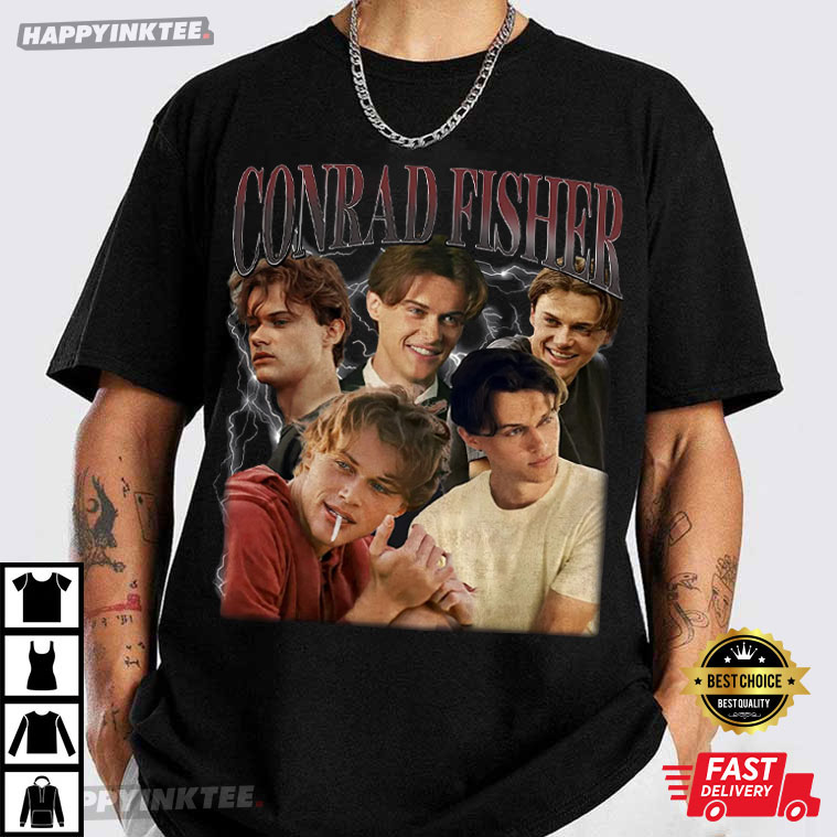 Get into the vibe of Cousins Beach with this Conrad Fisher Vintage Bootleg T-Shirt, inspired by the beloved character from The Summer I Turned Pretty. It shows off a bunch of portraits of Christopher Briney as Conrad Fisher in a cool retro bootleg graphic style