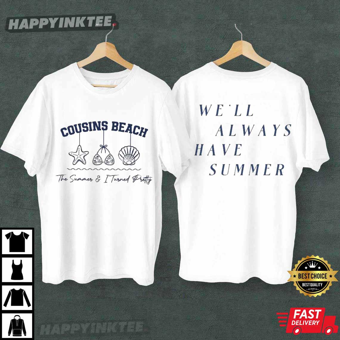 This TSITP fan apparel showcases a bunch of summer-themed graphics like seashells, bikini tops, and starfish. The quote “We’ll Always Have Summer” is a big part of the show. It’s a way to show how wonderful summer memories are.