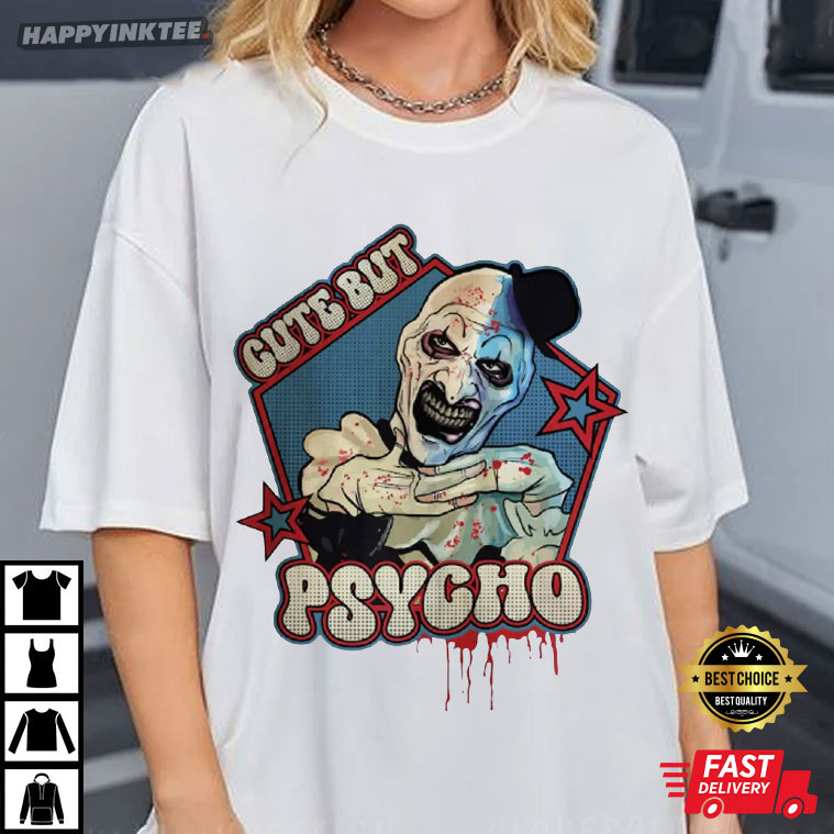 Our Terrifier horror graphic tee rocks some distressed retro lettering, blood-splattered details, and the slogan “Cute But Psycho.” It’s a must-have for fans of Terrifier and cult horror looking to flaunt their dark sense of humor.
