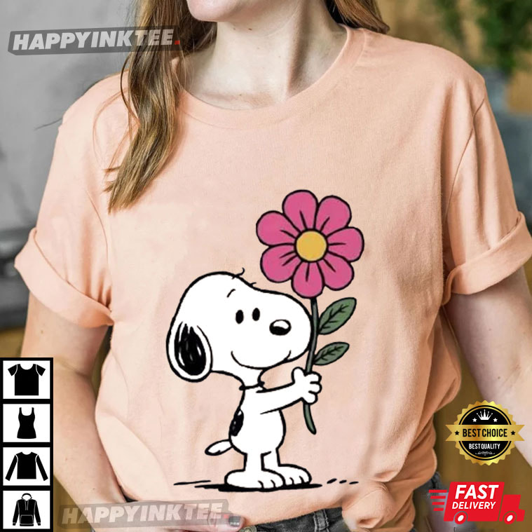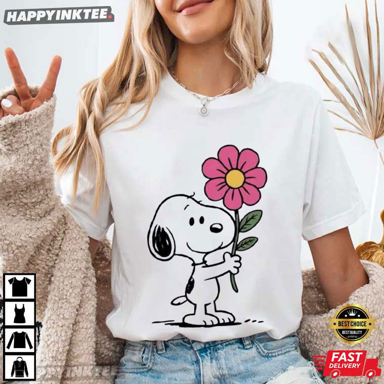 Cute Snoopy Flower Funny Peanuts Cartoon Valentine's Day Gift T-Shirt – valentine graphic shirts, couples shirts valentines day