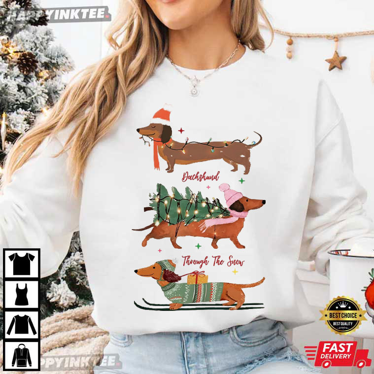 Dachshund Through The Snow Christmas Holiday T-Shirt – funny christmas shirts, christmas sweat shirts