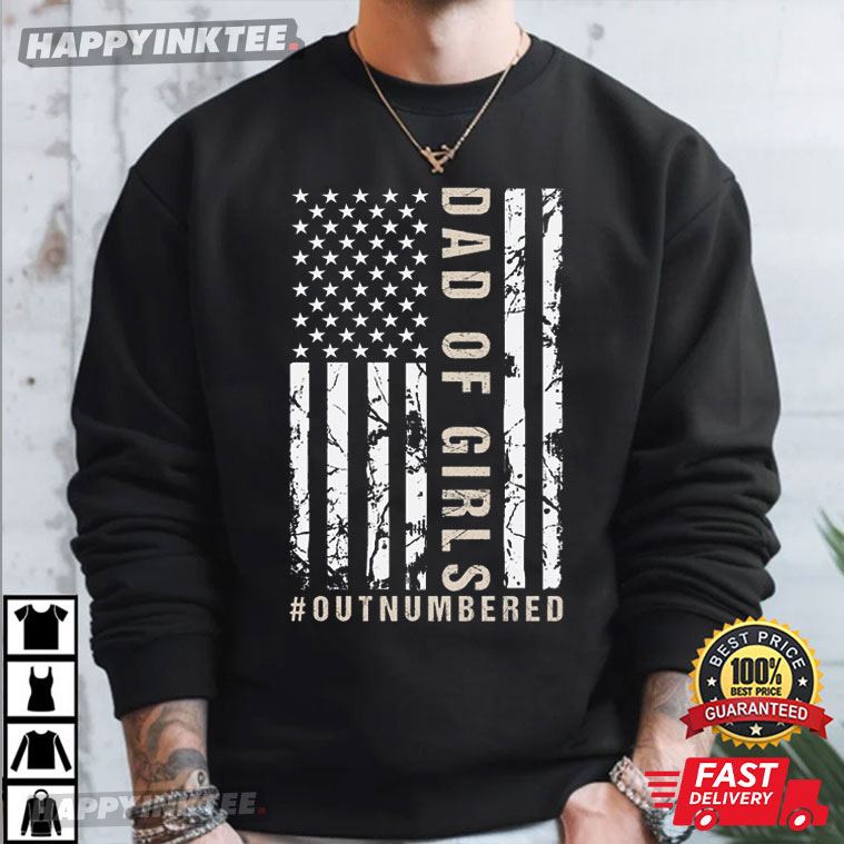 Dad Of Girls Outnumbered USA Flag Father’s Day Gift T-Shirt