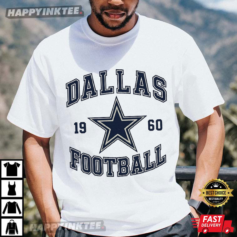 Rep your team in style with this Dallas Cowboys Football Vintage Style T-Shirt. It has the classic star logo, bold “Dallas Football” lettering, and the founding year 1960. It’s a must-have for all Cowboys fans!