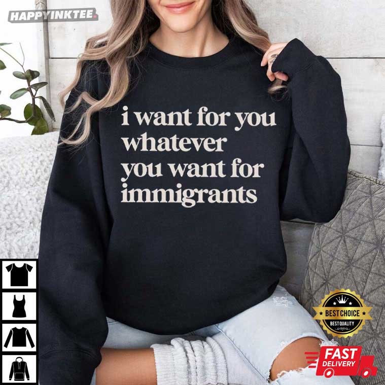 Our I Want For You Whatever You Want For Immigrants T-Shirt lets you show your support for immigrants while you wear it. It makes a clear and moving case for fair and kind treatment of everyone by encouraging people to think about their own wants and apply them to everyone.