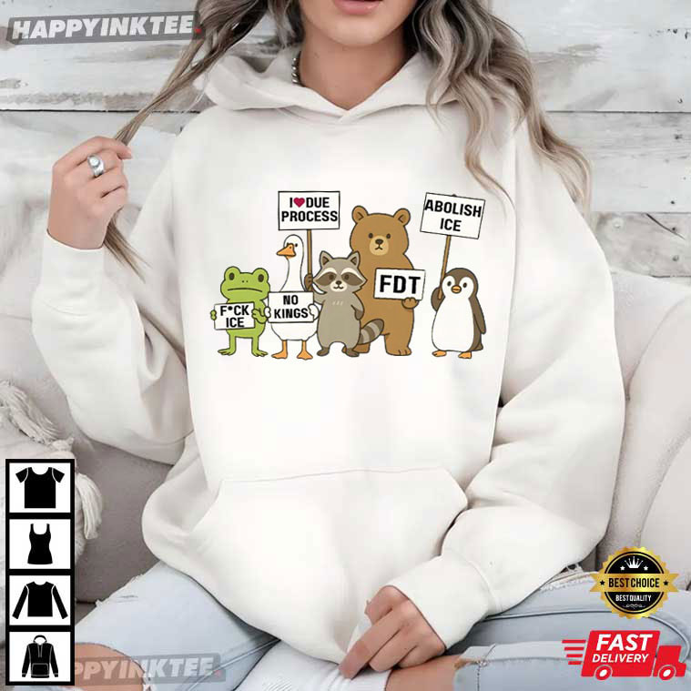 The Defund ICE Animals Protest Ice Out Of LA Abolish Ice FDT T-Shirt turns protest into pop-art—mixing cute characters with serious messages to make a statement that’s bold, readable, and impossible to ignore. “Abolish ICE” and “Defund ICE” are widely recognized calls within immigrant-justice and abolitionist movements— challenging the practices of US Immigration and Customs Enforcement and advocating for due process, dignity, and community-based solutions.