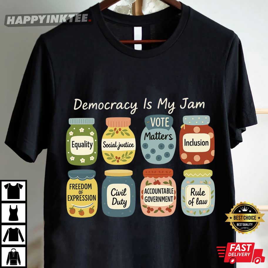 Democracy Is My Jam Equality Political Statement T-Shirt – t shirt printing, custom tee shirts