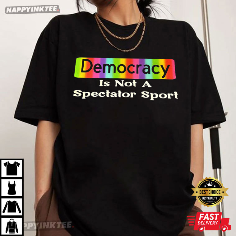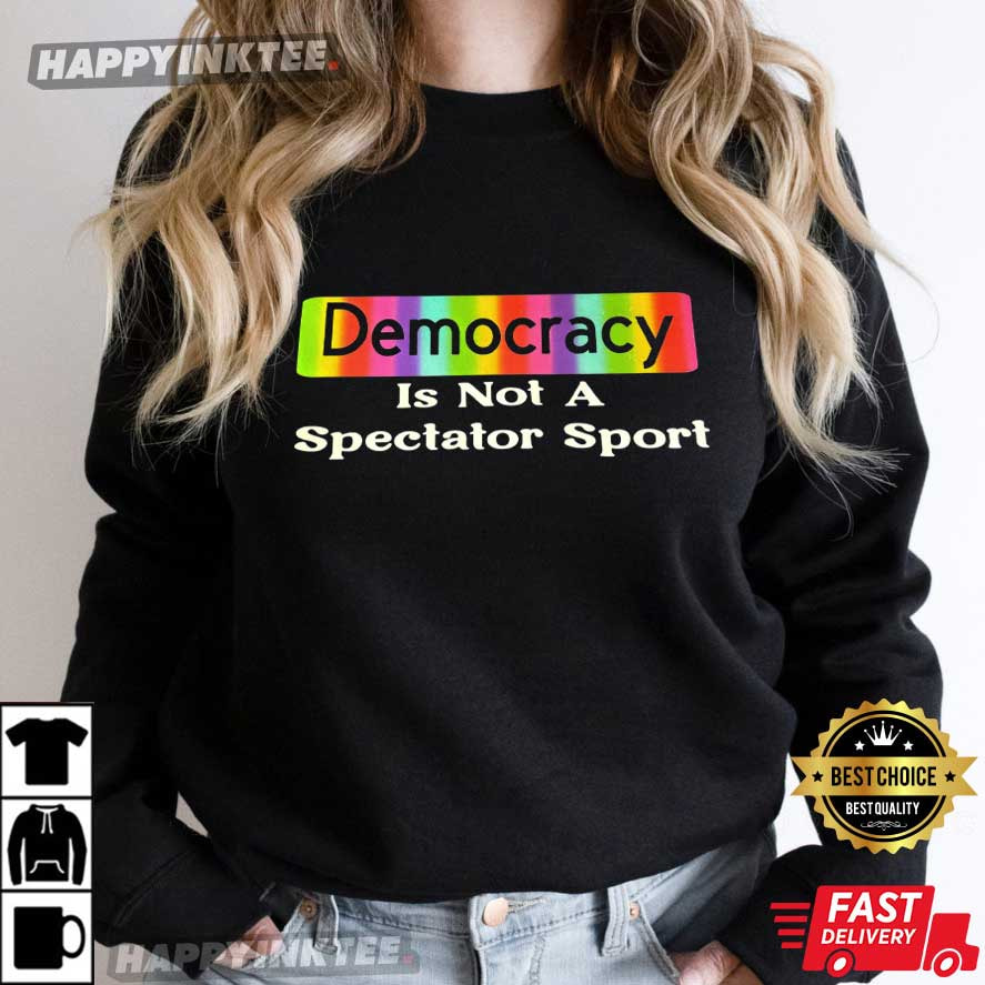 Democracy Is Not A Spectator Sport Funny Political T-Shirt – vintage fashion t shirts, vintage graphic t shirts, graphic t shirts vintage, retro graphic t shirts, unique graphic t shirts, retro tee shirts, vintage 80s t shirts, custom apparel