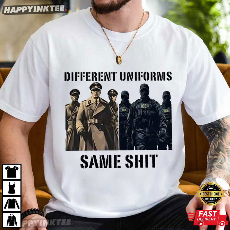 Different Uniforms Same Shit Abolish ICE Justice For People T-Shirt – vintage graphic t shirts, unique graphic t shirts