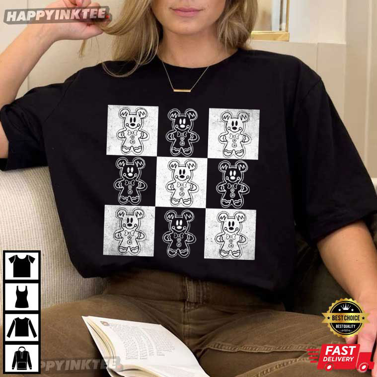 This Disney Gingerbread Christmas Mickey T-Shirt has Mickey Mouse-shaped gingerbread cookies laid out in a checkerboard pattern of black and white squares. Every Mickey cookie comes with an adorable bow tie and festive frosting, bringing all the holiday bakery feels.