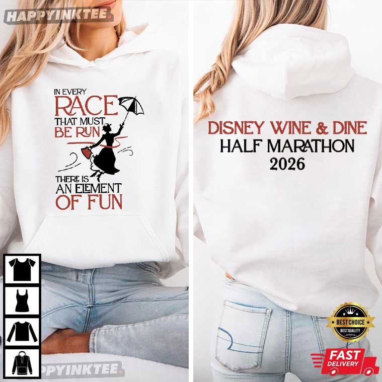 The Disney Themed Mary Poppins In Every Race That Must Be Run Half Marathon T-Shirt captures the spirit of running with a touch of timeless magic and motivation. Because of this, the shirt has particular significance for runners and spectators of the 2026 Disney Wine & Dine Half Marathon — an event known not just for athletic endurance, but for blending fitness with fantasy storytelling and celebration.