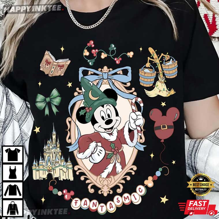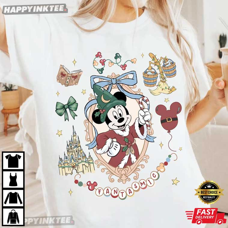Disney Wizard Mickey Bow Sorcerer Fantasmic Disneyland Christmas T-Shirt