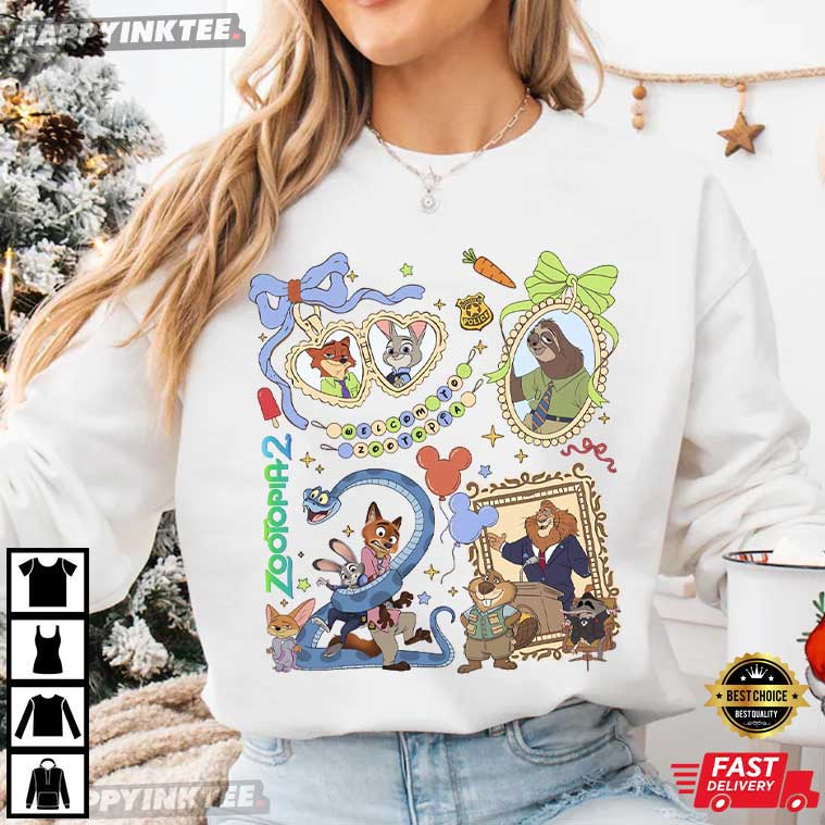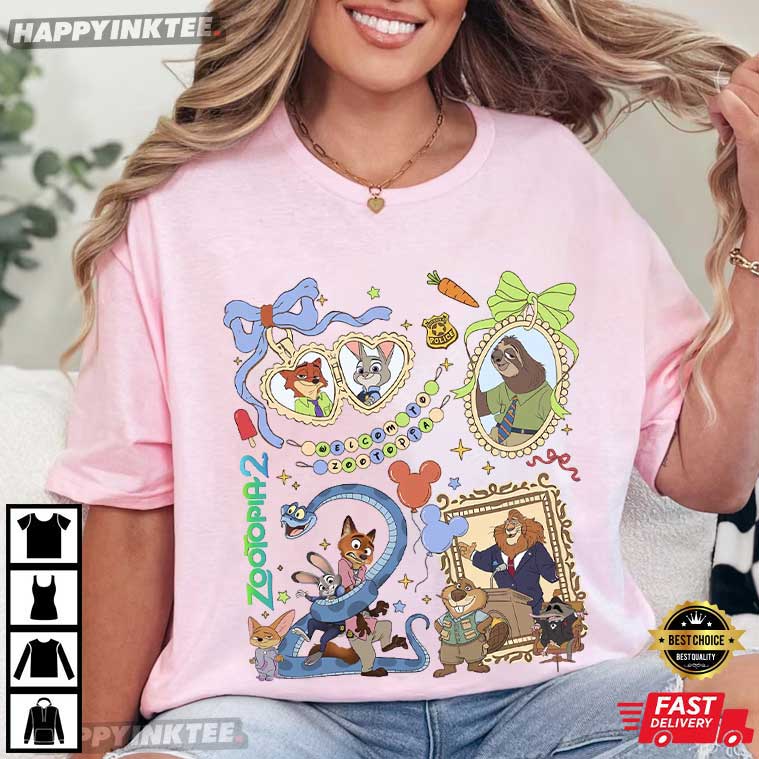 Disney Zootopia Movie 2 Characters Vintage T-Shirt