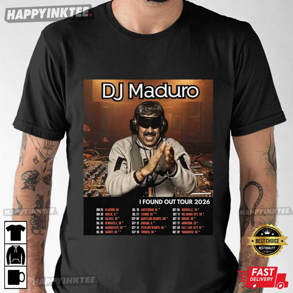 Satirical, bold, and unmistakably meme-driven, the DJ Maduro I Found Out Tour 2026 Venezuela T-Shirt uses a concert poster twist to transform political annoyance into dark humor. It’s sharp, provocative, and aimed at those who follow Venezuelan politics closely enough to get the joke immediately.